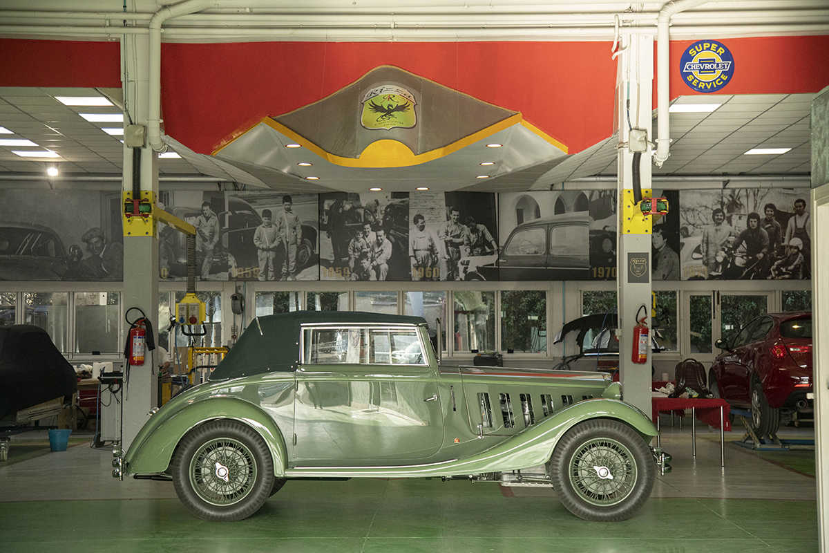 Negli anni Trenta, la 6C 2300 rappresentava una delle vetture più prestigiose della gamma Alfa Romeo. La versione cabriolet realizzata dalla carrozzeria svizzera Worblaufen è un raro esempio di eleganza fuori dagli schemi italiani. Con il suo sei cilindri in linea e uno stile pulito, era pensata per una clientela sofisticata, amante delle linee più sobrie ma ugualmente raffinate. Oggi è una delle varianti più rare e ricercate della famiglia 6C.